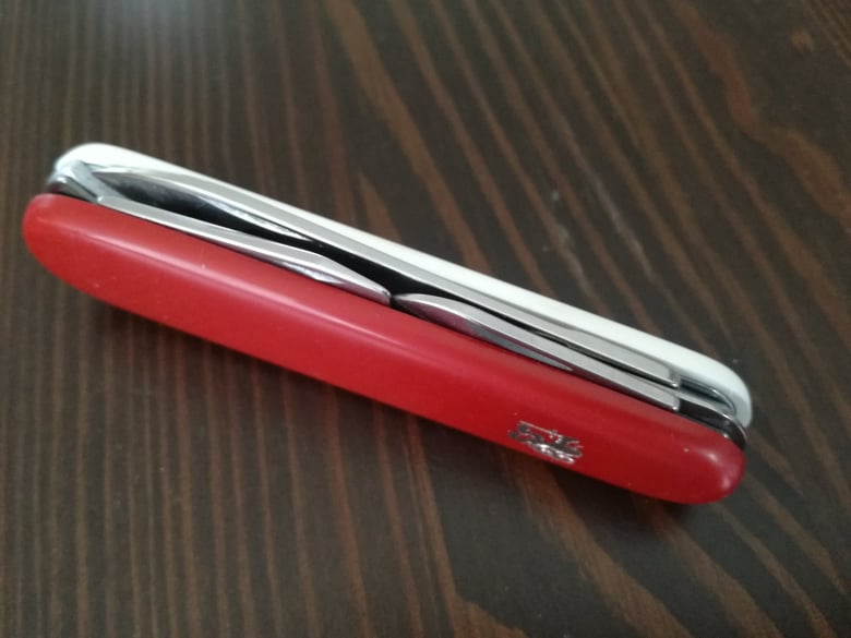 vybavení: 1x čepel, 1x otvírák lahví / šroubovák / drážka na odizolování vodičů, 1x otvírák na konzervy, 1x vývrtka, 1x bodec.