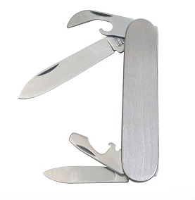 vybavení: čepel, malá čepel, otvírák lahví/šroubovák/drážka na odizolování vodičů, otvírák na konzervy